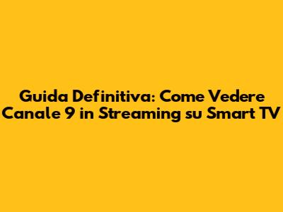 Ragazzi, parliamoci chiaro: nell'era digitale in cui viviamo, la possibilità di accedere ai nostri programmi preferiti, quando e dove vogliamo, è diventata quasi un diritto fondamentale, giusto? E se il vostro cruccio è come vedere Canale 9 in streaming su Smart TV, siete capitati nel posto giusto. Dimenticatevi le vecchie antenne che prendono solo metà dei canali e godetevi la flessibilità dello streaming direttamente sul grande schermo della vostra TV intelligente. Questa guida è pensata proprio per voi, per aiutarvi a navigare nel mondo dello streaming e a godervi Canale 9 senza intoppi. Continuate a leggere, perché vi sveleremo tutti i trucchi e i metodi più efficaci per farlo. Che siate degli smanettoni o dei principianti assoluti, troverete qui le informazioni che cercate, spiegate in modo semplice e diretto. Preparate i popcorn, perché la maratona di Canale 9 sta per iniziare, e questa volta la protagonista è la vostra Smart TV!
