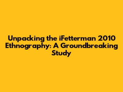 Hey guys! Today, we're diving deep into something super interesting: the iFetterman 2010 ethnography. If you're into understanding how technology shapes our lives and communities, then this study is an absolute must-read. It's not just some dusty academic paper; it's a vibrant exploration of how people actually use and interact with their digital tools. We're going to break down what made this research so special, what key insights it offered, and why it's still relevant today. So, grab your favorite beverage, get comfy, and let's get started on unraveling the world of iFetterman!