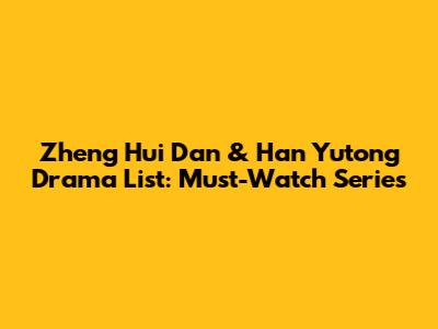 Zheng Hui Dan & Han Yutong Drama List: Must-Watch Series