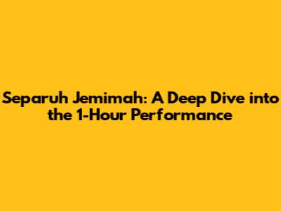 Let's talk about Separuh Jemimah, guys! Specifically, that amazing 1-hour performance that everyone's been buzzing about. If you're like me, you've probably watched it (maybe even multiple times!). But let's really break it down, shall we? What made it so special? What moments stood out? And why is Jemimah continuing to capture our hearts with her incredible talent?